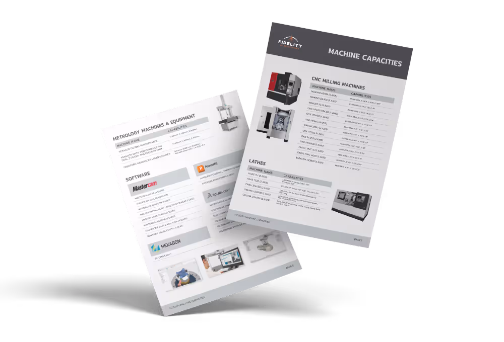 Fidelity has the resources and the know-how to complete even the most complex manufacturing projects. Our 55,000 sq ft facility houses over 40 machines spanning a wide range of capabilities, allowing us to confidently meet your organization’s unique requirements.